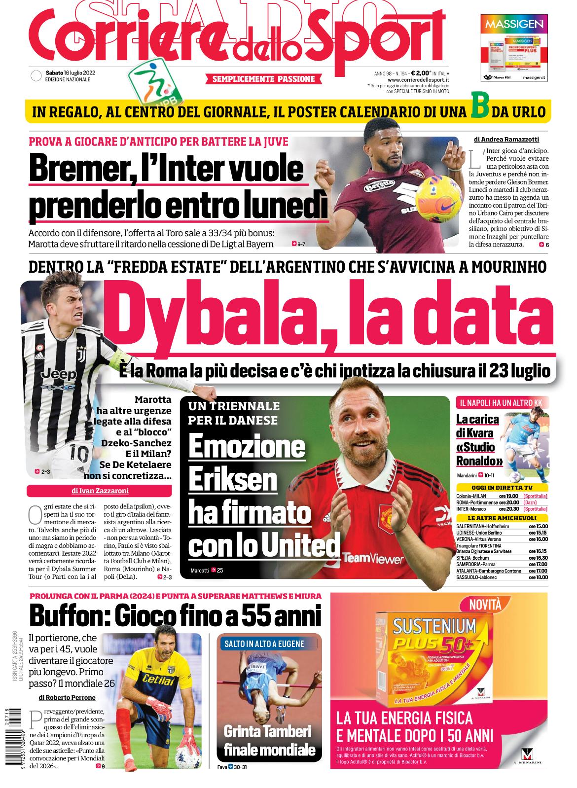 Corriere Dello Sport On Twitter La Prima Pagina Del Corriere Dello Sport Stadio Dybala La Data Bremer L Inter Vuole Prenderlo Entro Lunedi Emozione Eriksen Ha Firmato Con Lo United Roma